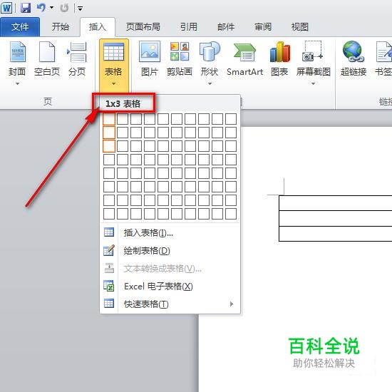 在这里我们插入三行一列的表格,方便我们待会画四线三格!