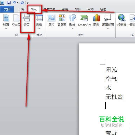 定位好光标之后,点击”插入”菜单下的”分页”。