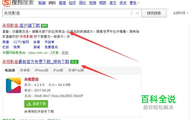 央视影音:在电脑浏览器输入电视直播软件。下载央视影音安装。