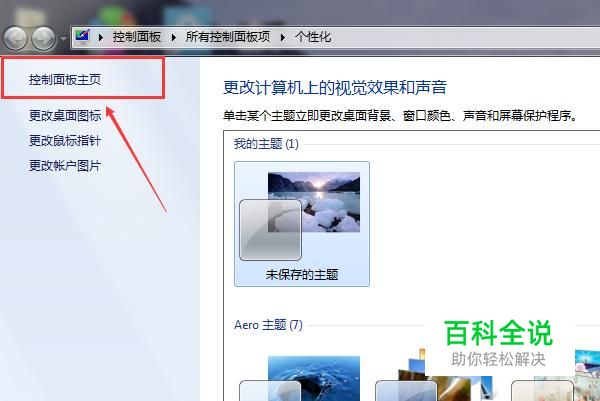进入“个性化”页面后,接着点击页面左上角的“控制面板主页”按键。