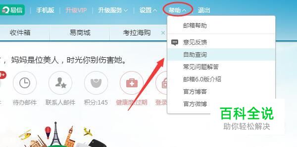 登录成功后,找到邮箱首页右上方的“帮助”,并点击“帮助”。