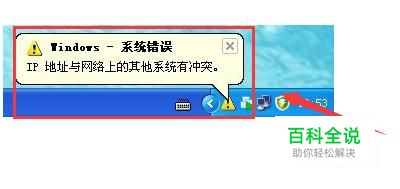 在上网时发现IP地址与网络上的其他其他系统有冲突,如图所示: