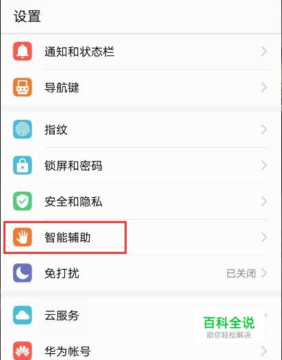 然后至于指关节的手势控制,我们可以打开设置查看,首先打开设置,选择“智能辅助”。