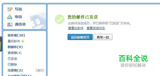在QQ邮箱界面的左上方有“写信”、“收信”、“通讯录”三个选项,我们选择“写信”这个选项。