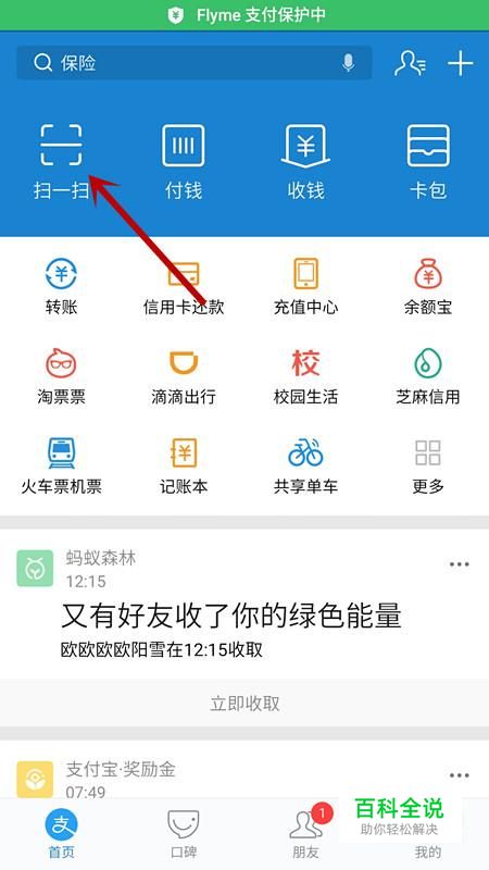 进入支付宝后,选择“扫一扫”