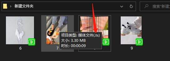 打开文件夹,我们看看剪辑后的视频信息是否已经转换成了,如果显示TS,那就说明转换成功了。