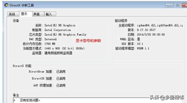 在“显示”选项卡中查看“显卡”的型号和参数信息。