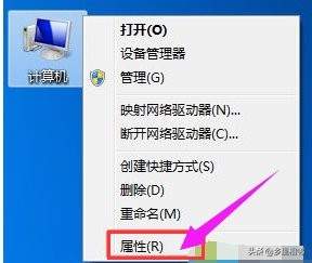 在系统桌面上右键点击”我的电脑”(这台电脑/计算机),选择“属性”