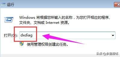 在运行输入框中输入dxdiag,确定,打开DirectX诊断工具