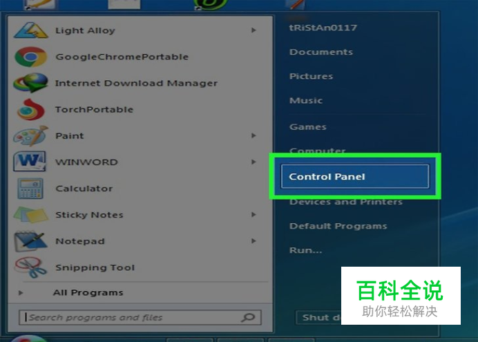 点击“开始”按钮,然后选择“控制面板”。