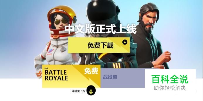 点击官网主页左上角的FORTNITE,就可以进入到下载界面了。这里有免费的BATTLE ROYALE和收费的战役包,你根据自己的要求进行选择。