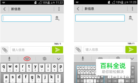 编辑短信时如何切换手写输入法 新建一封短信,点击输入框,下面弹出软键盘,默认为自带输入法,点击软键盘上方键盘图标,选择“输入方式。