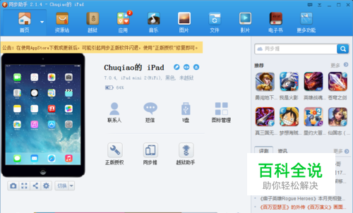 首先呢,在电脑上下载同步助手。(不要嫌麻烦,这个软件很有用!) http://www.tongbu.com/