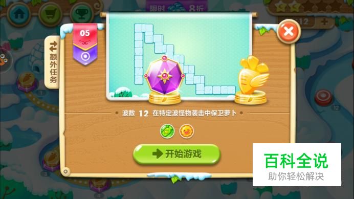 最后我们继续消除地图中的其他道具,并且升级我们已有的炮塔,消除所有的怪物,12波怪物结束以后,就可以通关并且获得水晶萝卜了哦。