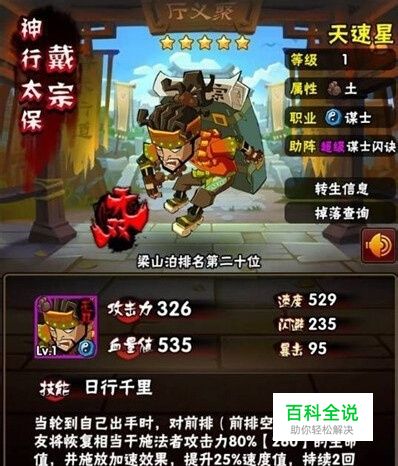 2.戴宗 戴宗,又一位双buff武将.不过他的效果仅对前排有用.回复前排武将相当于自己攻击力80%的生命值和提升25%的速度值,非常实用的一名武将.就是不太清楚效果是否能叠加。