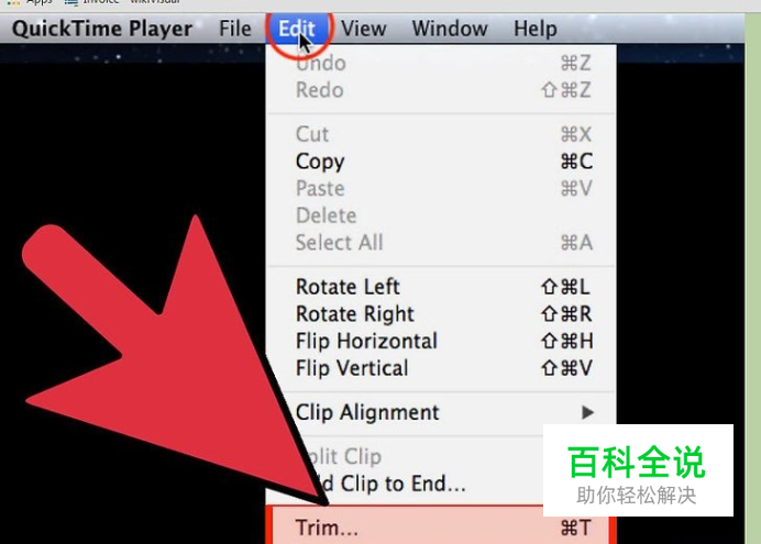 从Quicktime播放器中打开你的视频文件。你可以剪辑任何Quicktime支持的视频或音频文件。QuickTime通常在你的桌面上,也能在应用文件中找到。