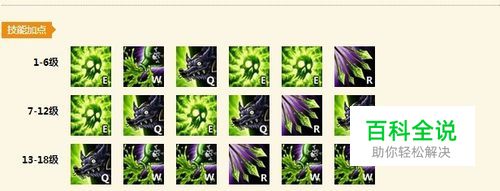 W剧毒之桶:范围减速附带2层被动,蓝多的时候可以WE的连招骚扰对面,也可以减速之后追着A再引爆。虽然很有用但不用把他升满,2级的时候点一点就好。