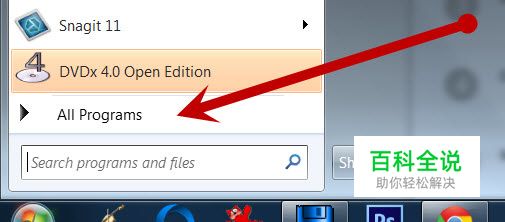 将鼠标放置在“所有程序”上或点击“所有程序”。