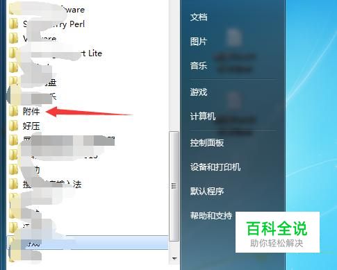 进入到了的所有程序的界面当中,进行点击所有程序的“附件”的文件夹。