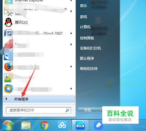 首先,进行点击左下角中的“开始”,弹出了窗口中,进行点击“所有程序”
