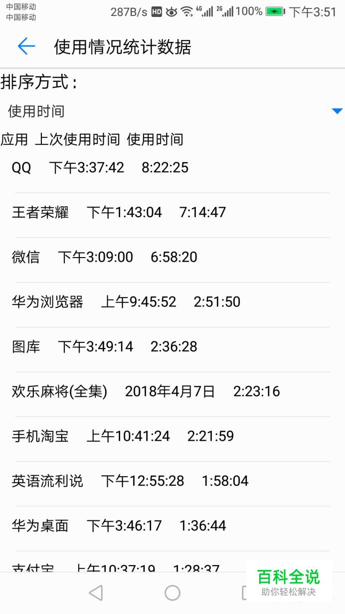 就可以查看手机一天内是使用情况了。如图