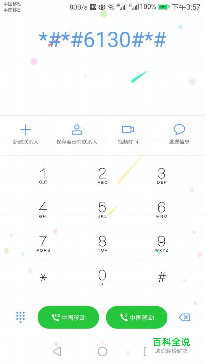 打开手机,使用拨号功能,输入*#*#6130#*#*,如图