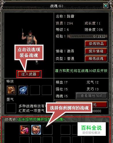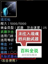 在弹出的对话框中,按照对话框提示,放入你所想装备的兵胎武器。点击“确定”即可完成对战魂的装备。