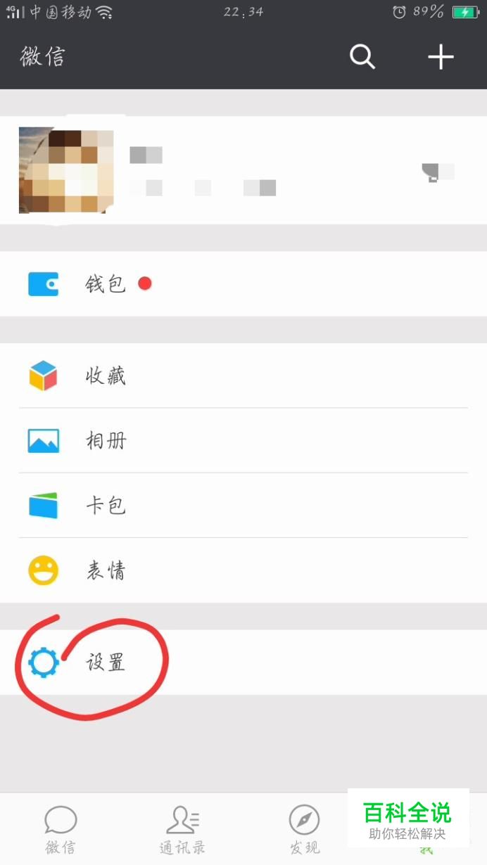 手机打开微信进入”我”的界 面,在微信我的界面里面找到“设 置”并点击进入。