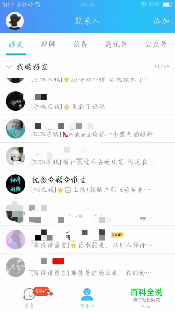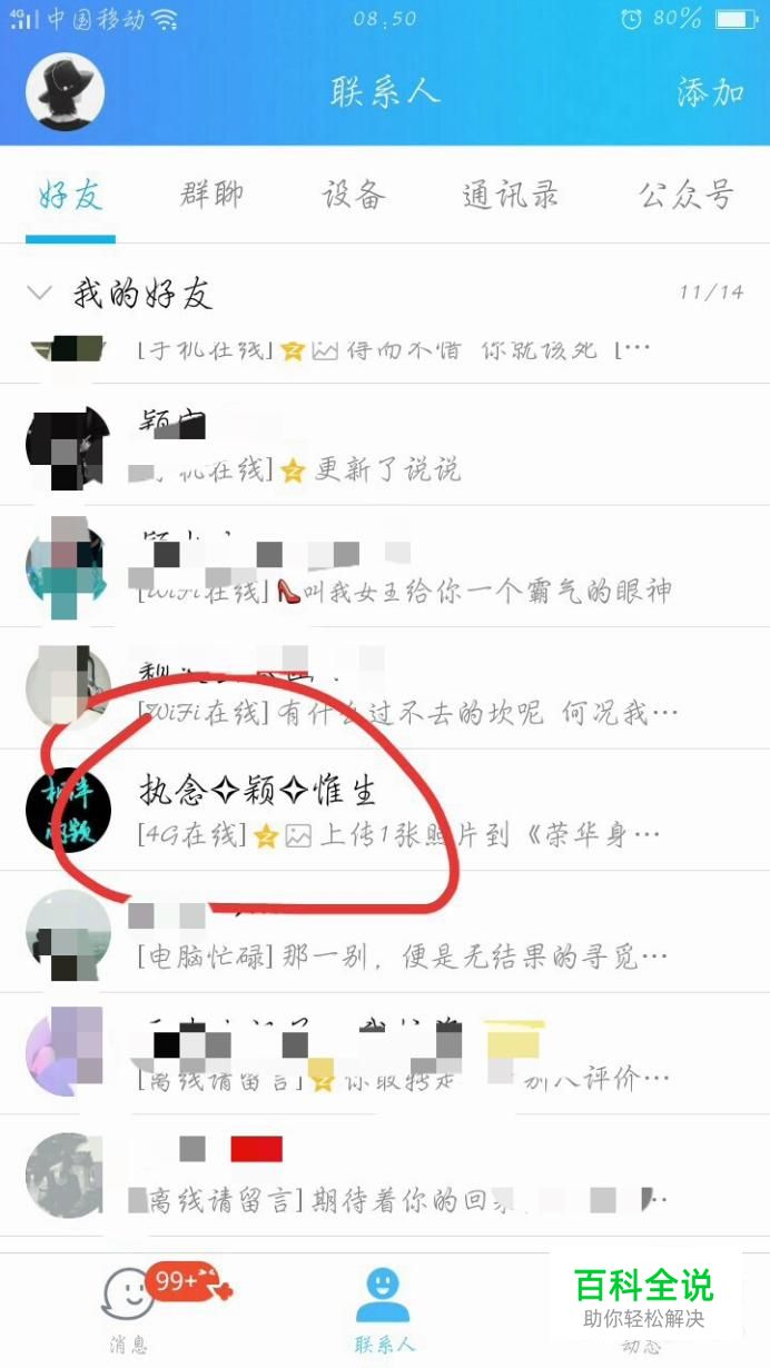 先打开手机QQ,进入联系人,选择任一一个好友,点击进入,然后选择发消息。