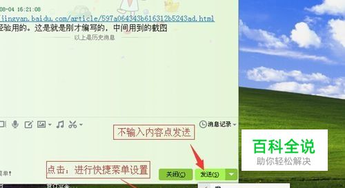 登录QQ,随便打开一个聊天窗口,在不输入内容的情况下,点击发送按钮,再点击“进行快捷回复菜单设置”
