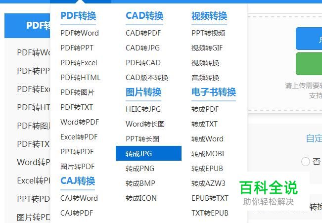 进入在线操作界面后。在菜单栏上的操作功能中找到文档转换下的图片转换并点击转成JPG选项。