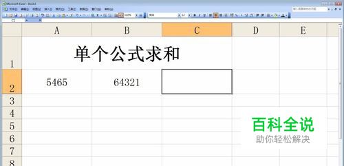首先选中需要求和的空白单元格,如图所示,选中C2单元格