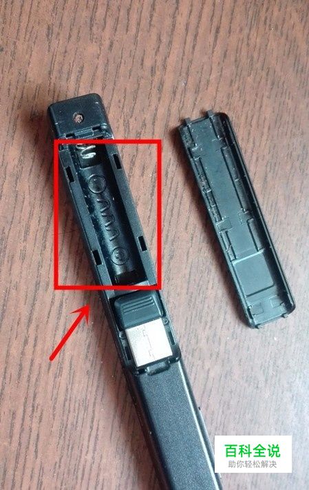 首先,我们将翻页笔的后盖打开;