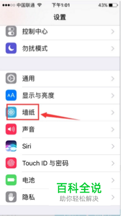 Iphone手机是自带主题的,点击进入手机设置,找到“墙纸”,如图所示。