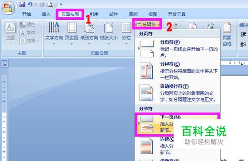 1. 页面布局 ->分隔符 ->下一页, 完成分节