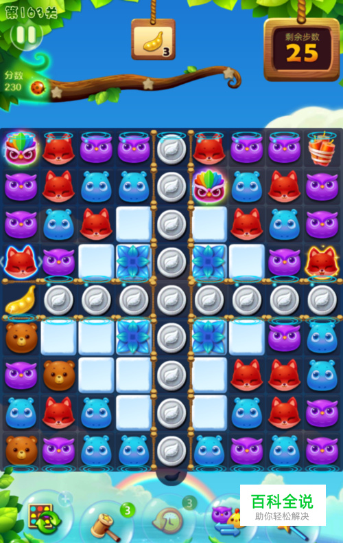本关消除金豆荚,但是只有一个通道,所以要通过消除障碍让它们快速降落