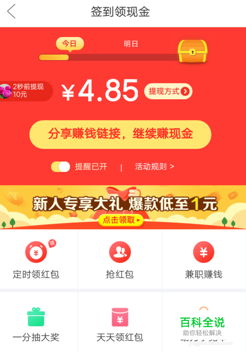 1,多多果园,这里面只要你种下自己的果树等到果树成功后便可以包邮获得免费水果。 2,边逛边赢中随意点击一天便可以获得现金。 3,签到如何领取现金?