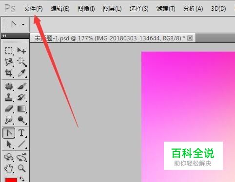 首先,把要扫描的图片正面朝下放入扫描仪中,再打开PS,点击文件菜单。