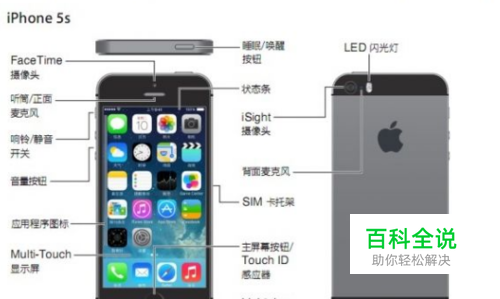 如图,是iphone5s的说明书,你需要了解电源键还有home键位置即可;
