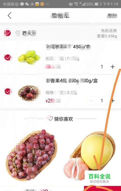 所需购买的商品添加到购物车后点按界面右下角的去结算标志,如下图所示。