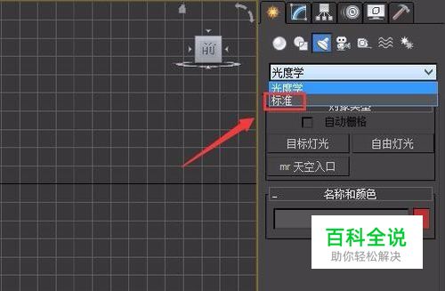 点击灯光选项在其内点击设置选项,在其子级菜单里找到标准选项,如图所示: