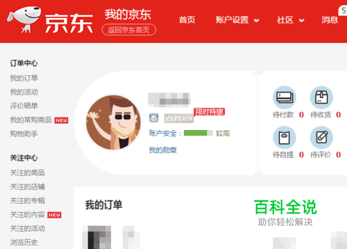 首先,用浏览器打开京东商城首页,并登录你的京东账号。登录账号以后,点击首页上的账号名称。
