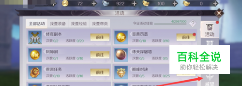 点击之后进入到活动界面,然后点击红色箭头处的【威望】。
