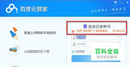 百度网盘云管家登陆提示错误:1550010