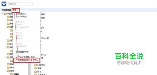 在【书签管理器】中点击【整理】----【将书签导出到HTML文件】
