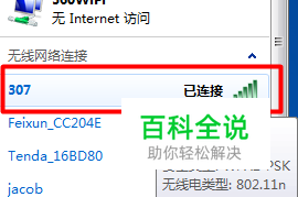 单击无线图标可以显示已经链接上的WiFi。