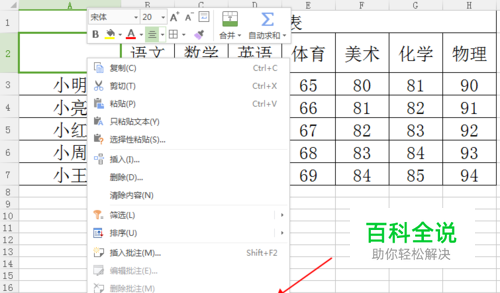 然后我们先全选选择“姓名”,然后右键--选择“设置单元格格式”--选择“下标”,同样的操作,“科目”我们选择”上标”。最后这个添加斜线和文字就做好了。(如果此时要调整次单元格内的文字大小,可以使用导航栏的“A+和A-”)