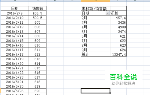 然后你就会发现刚才按日期的表格现在变成了按月统计销售额的表格了。