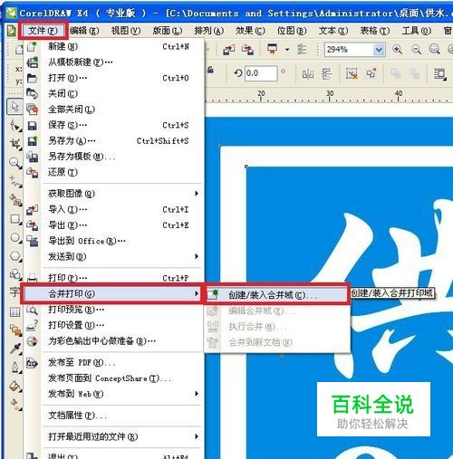 选择文件-合并打印-创建装入合并域。