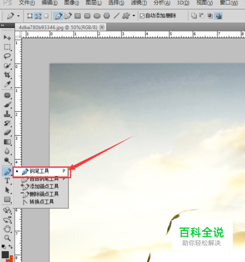 打开PS并导入需要编辑的图片(什么?不知道怎么导入图片?好吧,那我更正成:用PS打开你需要编辑的图片),同时在左侧工具箱找到并切换到“钢笔”工具状态。